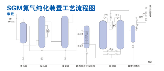 氮?dú)饧兓盗醒b置 氣體純度:≥99.9995% 氧含量:≤2ppm 二氧化碳含量:≤1ppm 露點(diǎn):≤-60℃ 技術(shù)特點(diǎn): 若用戶所需氮?dú)鈸?biāo)大于99.999%時(shí),在我公司制氮機(jī)設(shè)備的基礎(chǔ)上配置純化設(shè)備。本系列產(chǎn)品采用碳載脫氧催化劑,不需消耗氫氣源,碳與氮?dú)庵械挠嘌醴磻?yīng)生成二氧化碳,再采用變壓吸附工藝除去二氧化碳和水,經(jīng)過濾后得到高純度氮吸附工藝除去二氧化碳和水,經(jīng)過濾后得到高純度氮?dú)狻8呒兌鹊獨(dú)饧夹g(shù)指標(biāo)可達(dá)O2≤2ppm,CO2≤1ppm,露點(diǎn)≤-60℃。